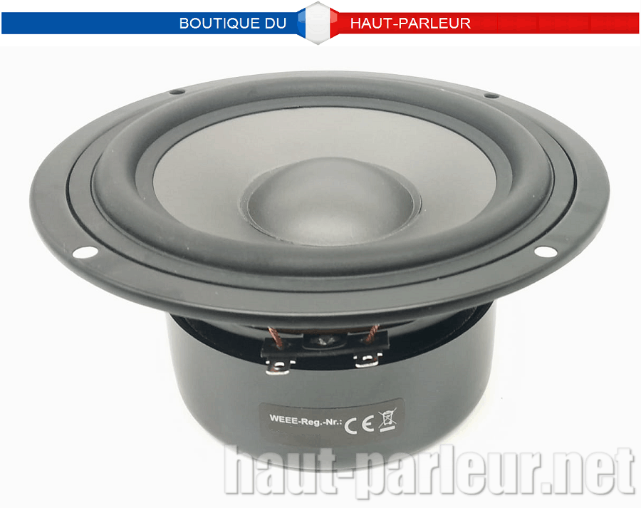 Haut-parleur de remplacement Hi-Fi grave médium diamètre 13 cm avec membrane en polypropylène et une suspension caoutchouc. Puissance 50 watts 8 ohms