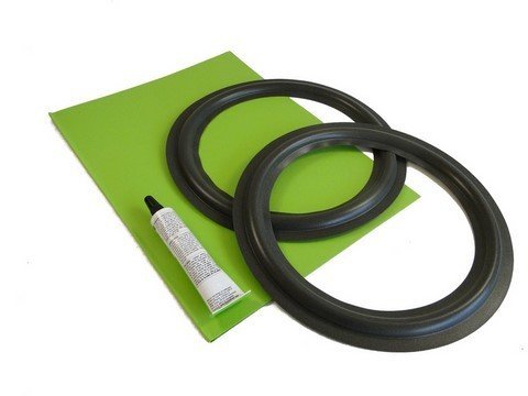 Kit de réparation pour le remplacement de la suspension d'un haut-parleur. Ce kit contient un dissolvant + un lot de 6 pinces à machoires plates et un jeu de 6 cales pour le centrage de la bobine.