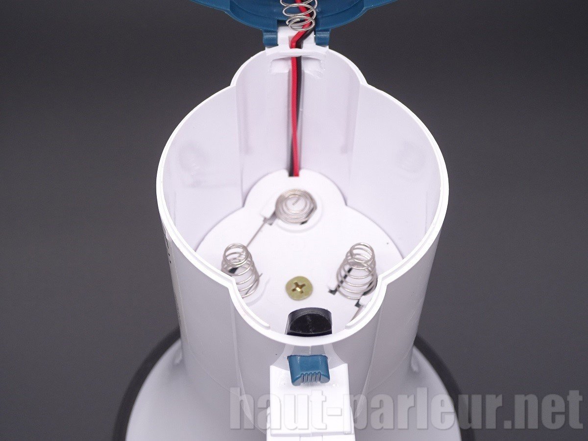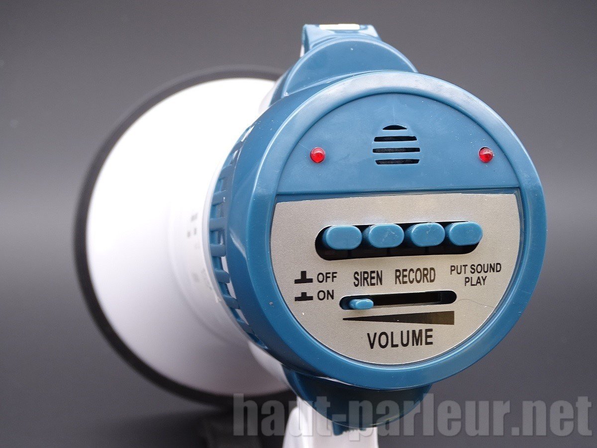 Il est équipé d'une fonction enregistrement qui peur enregistrer jusqu'à 8 secondes. Le volume de la voix et du message enregistré sont réglables ainsi que celui de la sirène. Le microphone est intégré à l'arrière du porte voix.