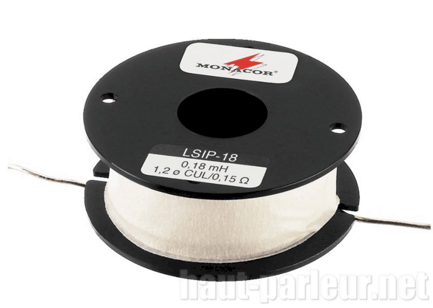 Self 0,18 mH 300 watts, faible distorsion, résistance interne minimale, bobinée sur fil de cuivre 1,2 mm. Pour la réalisation ou la rénovation de filtre haut-parleurs d'enceintes acoustiques