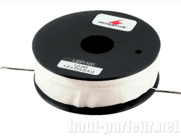 Self 1 mH 300 watts, faible distorsion, résistance interne minimale, bobinée sur fil de cuivre 1,2 mm. Pour la réalisation ou la rénovation de filtre haut-parleurs d'enceintes acoustiques